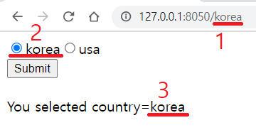 예2: Submit 버튼을 누른 후에야 선택한 country 가 URL 이나 country 결과에 반영되어야 한다.
