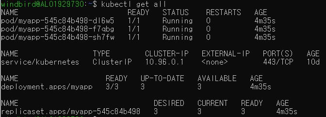 kubectl get all # kubectl get deployments # kubectl describe deployment myapp
