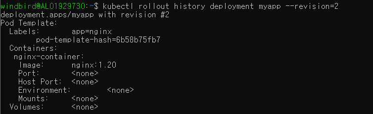 revision=2 가 nginx:1.20 으로 수정한 revision 인데, 변경된 부분을 아래처럼 확인할 수 있다.