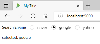 import com.raquo.laminar.api.L._ import com.raquo.laminar.nodes.ReactiveHtmlElement import org.scalajs.dom import org.scalajs.dom.html object Main { class Radio(name: String, items: Seq[String]) { val selectedVar: Var[String] = Var("") val elem: ReactiveHtmlElement[html.Div] = div( cls := "ui form", div( cls := "inline fields", label(name), items.map(item => div( cls := "field", div( cls := "ui radio checkbox", input( typ := "radio", checked <-- selectedVar.signal.map(_ == item), onChange.mapTo(item) --> selectedVar ), label(item) ) ) ) ) ) } def main(args: Array[String]): Unit = { val radio = new Radio("Search Engine", List("naver", "google", "yahoo")) val content = div( radio.elem, div( label("selected: "), child.text <-- radio.selectedVar.signal, Signal.fromValue("google") --> radio.selectedVar // 초기값 설정 ) ) val containerNode = dom.document.getElementById("main_content") render(containerNode, content) } }결과